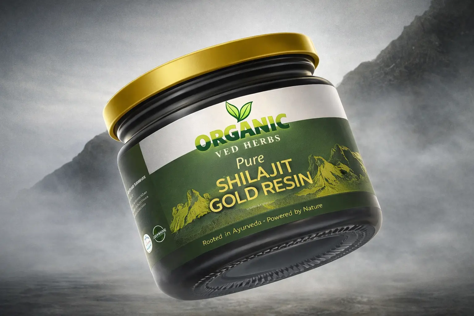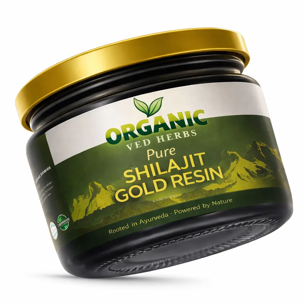 Organic Ved Herbs Shilajit Gold Resin is a premium-grade, purified Himalayan shilajit enriched with 85+ essential minerals, fulvic acid, and trace elements. Sourced from the pristine Himalayan ranges and traditionally purified using Ayurvedic methods, this 100% natural resin helps boost energy, stamina, strength, and overall wellness.